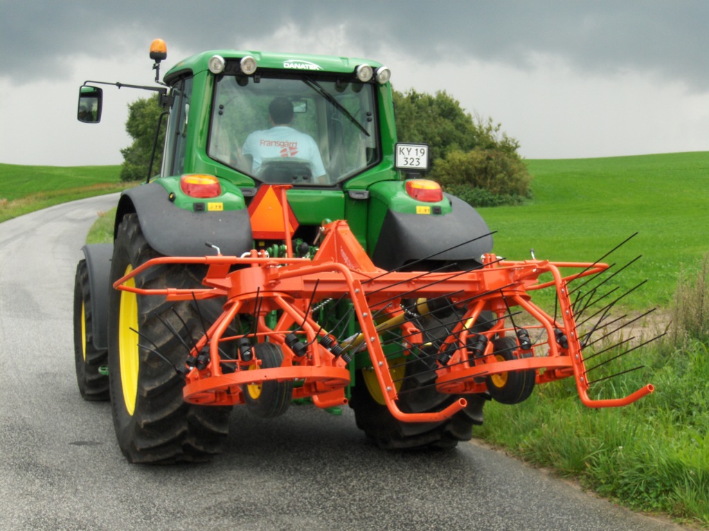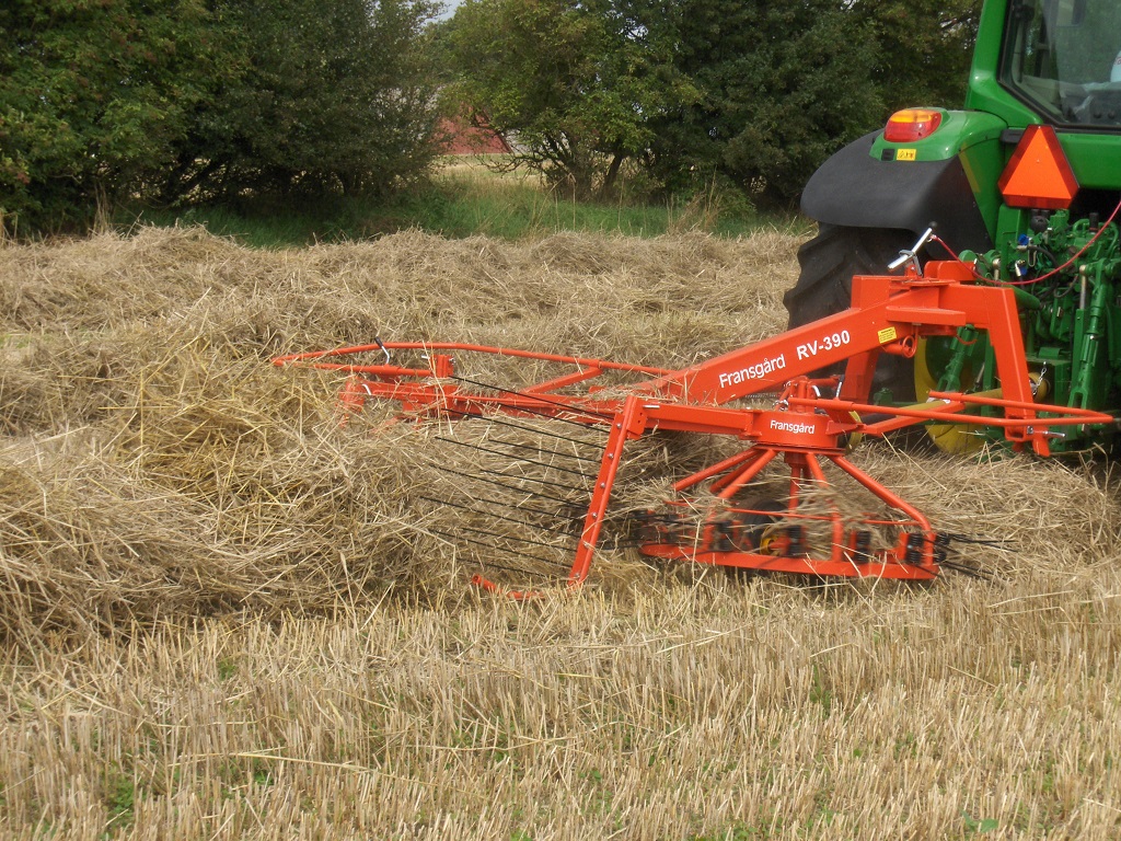 Fransgård RV-390 er en enkel og robust kombirive. Maskinen kan stilles inn til for skjellig arbeid, både spredning og sammenraking. Riven kan også brukes til lufting av ranker med godt resultat.Samlegrind og PTO er inkludert.