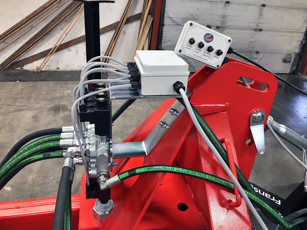 EL-Hydraulisk styring af hydraulikken på planeringsskæret med 4 funktioner. Styringen kræver 12 volt og 1 stk. dobbelt virkende hydraulikudtag.