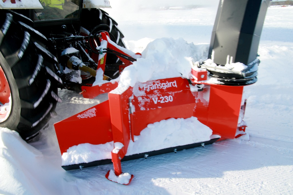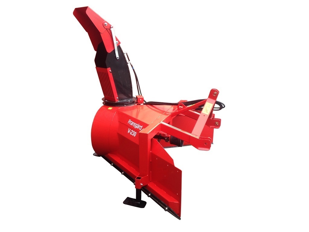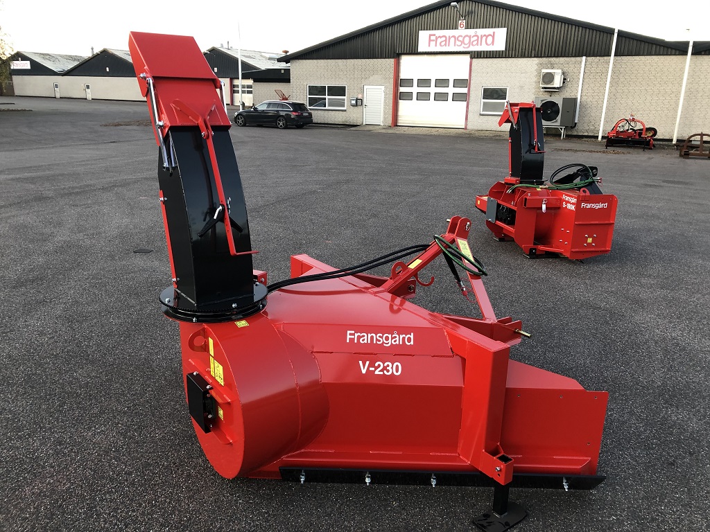 Fransgård V-230 snøfres er en liten og robust V-fres. Den har nyutviklede innmatere og utkastertut. Snøfresen har fire løse innmatervinger som gir god effekt. Fresen har dypt viftehus som sikrer god kapasitet, og hydraulisk sving av tuten. Utskiftbare slitestål og mellomklaff er standard.