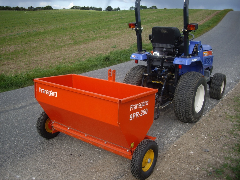 Fansgård Strømaskin med manuell drift. 3-punkt oppheng er standard.Drag med kulekobling for tillhengerfeste er ektrautsyr.