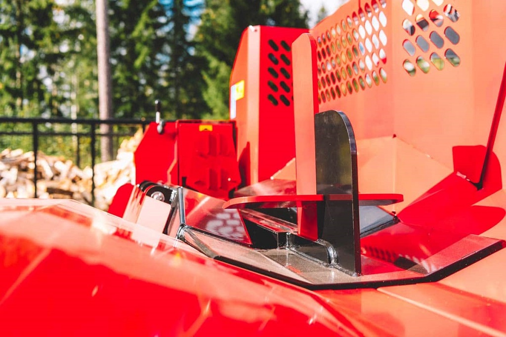 Vedkløyveren er utstyrt med hydraulisk kubbeløfter og hydraulisk kniv justering. Kubbeløfteren håndterer fint en kubbe på 80cm i diameter i 100cm lengde.