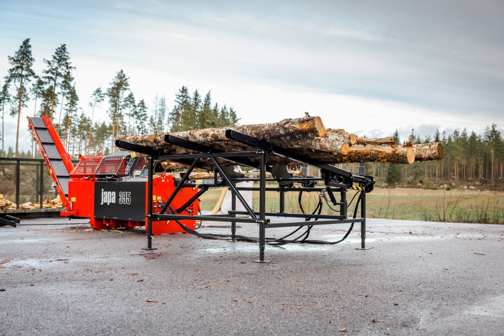 Japa stokkebord med 2 stk innmaterruller og hydraulisk innruller