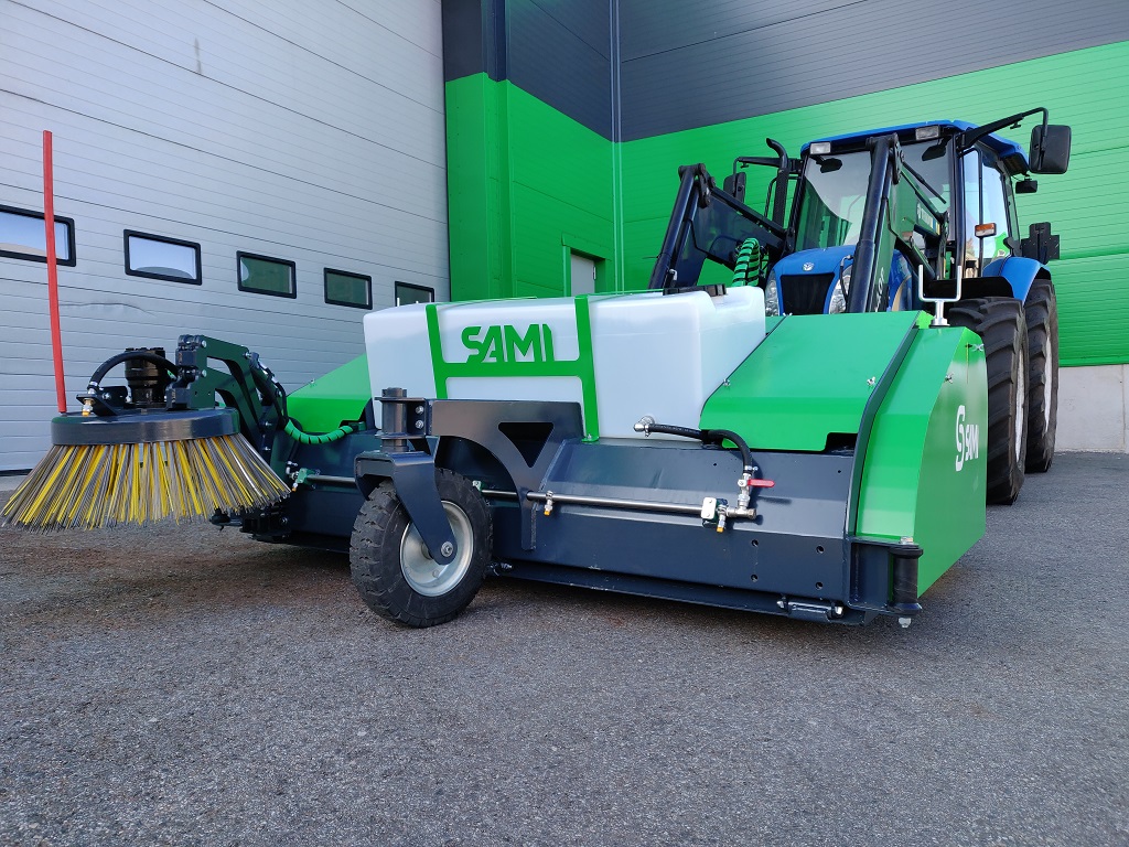 Sami feiemaskin for profesjonelle entreprenører. Feier helt rent og produserer minimalt med støv. Tre hjul og flytende oppheng sørger for god flyt på feiekosten.