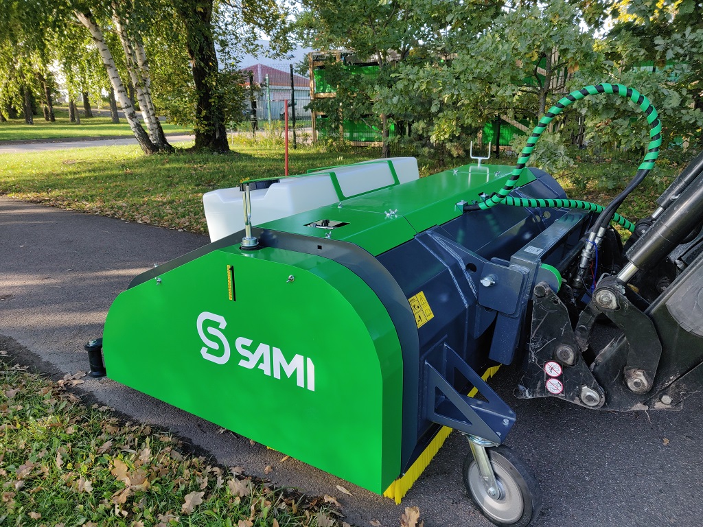 Sami CB2000 har som standardutstyr høyre sidekost Ø700mm som er hydraulisk hevbar. Vanntank på 200L, 12V vannpumpe og dyser for støvdemping er også