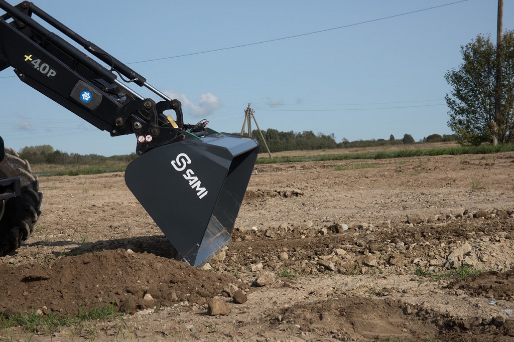 SAMI frontlaserskuffer er allsidig redskap til forskjellige formål. Universalskuffene er et godt valg til håndtering av snø, korn, kompost, ved og andre materialer med lav egenvekt. Sami-skuffene har slitestål i S355 stålkvalitet i størrelsen 15×150 mm og underliggende slitestål i S235/8×8 mm. Innfestning for frontlaster er forsterket for å gi lang levetid. Skuffebunn og bakre forsterkninger gir en kraftig konstruksjon av skuffa og chassiet er av 4 mm S235 stål. 2400-skuffa har 5 mm/S235 stål. Alle skuffene leveres med SMS-feste.