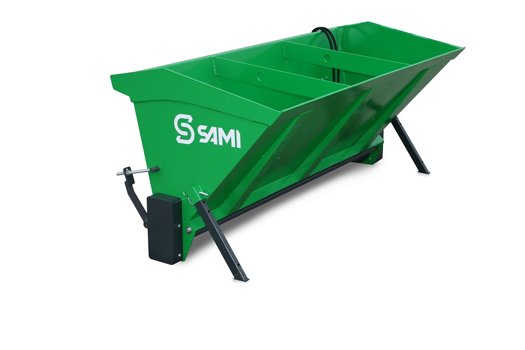 Selvlessende strømaskin SL 1100 har oljevolumkontroll, omrører og regulerbar gummibunn. Dette sikrer jevn og fin utmating. Arbeidsbredden er 2,3 meter og maskinen kan front- eller bakmonteres.Teleskopisk sylinder som tilter strømaskinen kan leveres som ekstrautstyr. Tilt: 750-1225 mm, ved 180 bar trykk leverer sylinderen 4,2t drakraft og 7,2t dyttekraft